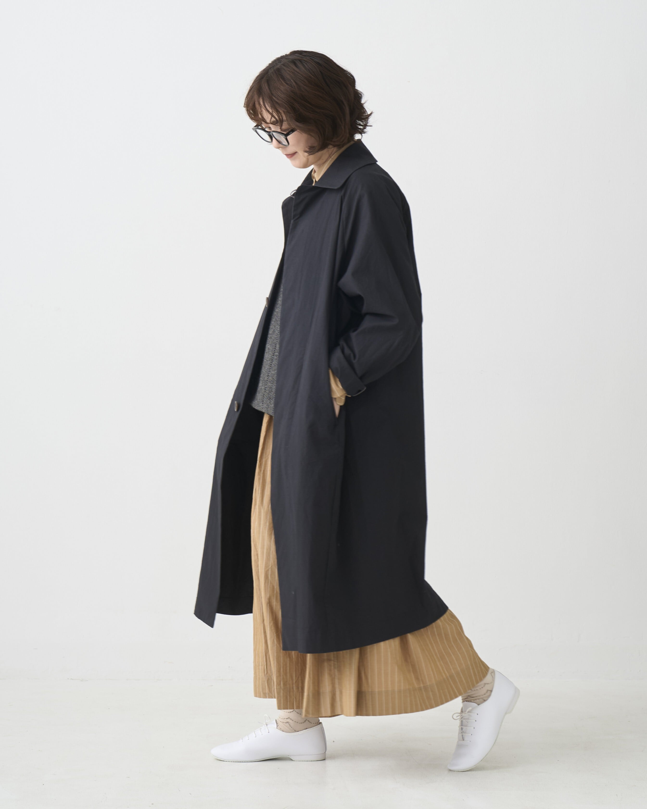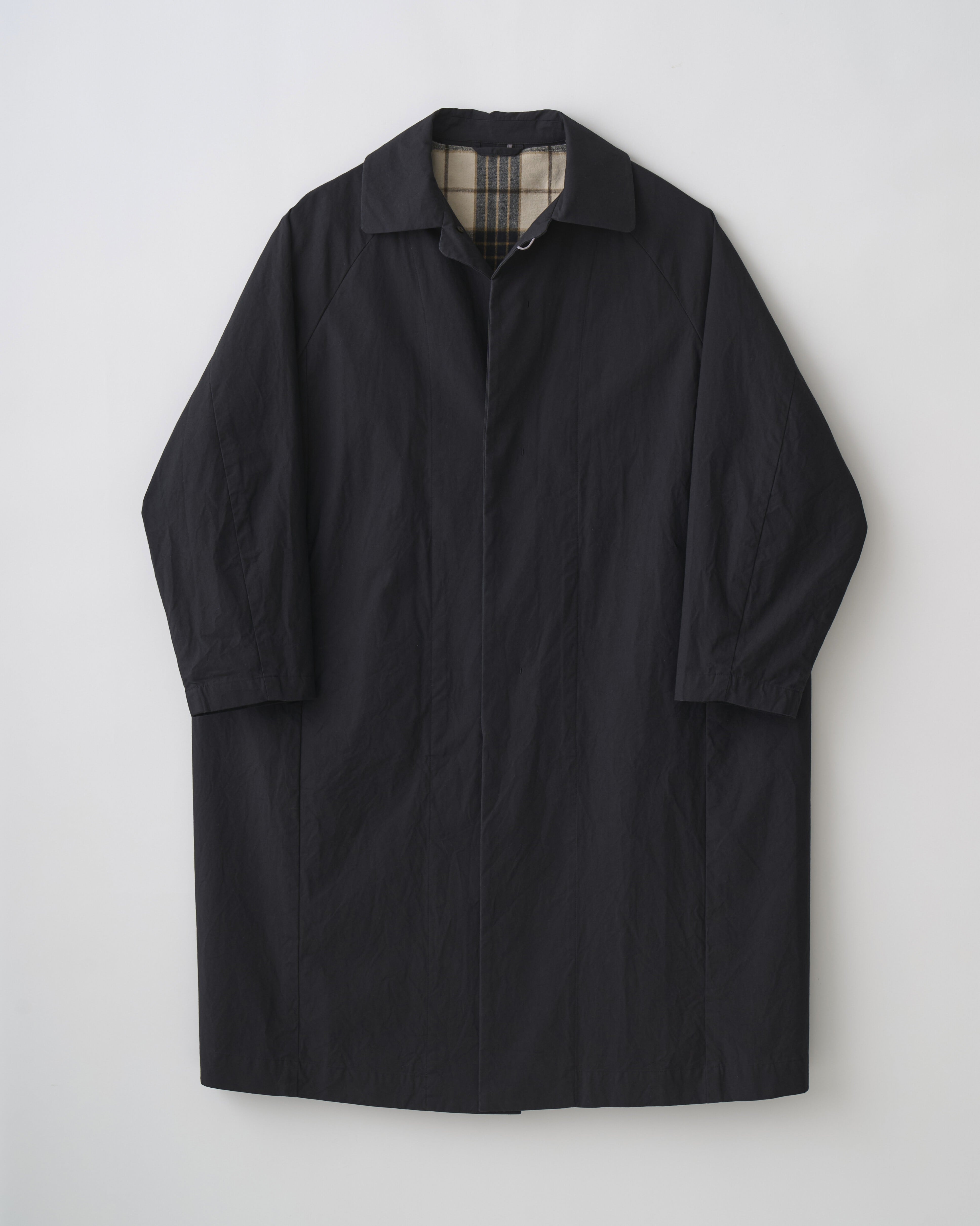 シンプルな中にも仕様に思いの詰まった半裏付きの、ラグランオーバーコートです