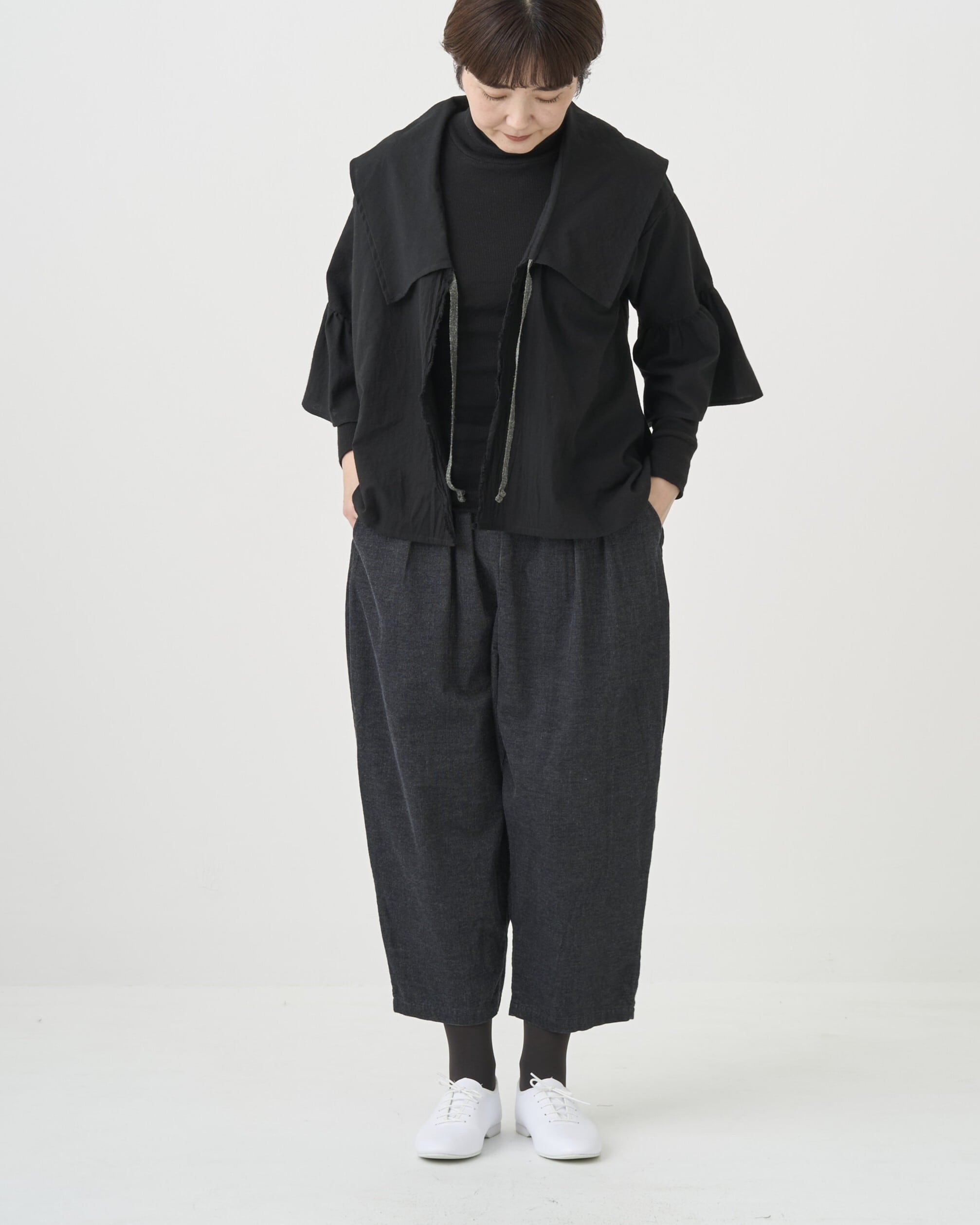 ゆったりさせて裾も細すぎず太すぎずといった絶妙なラインをめざしました