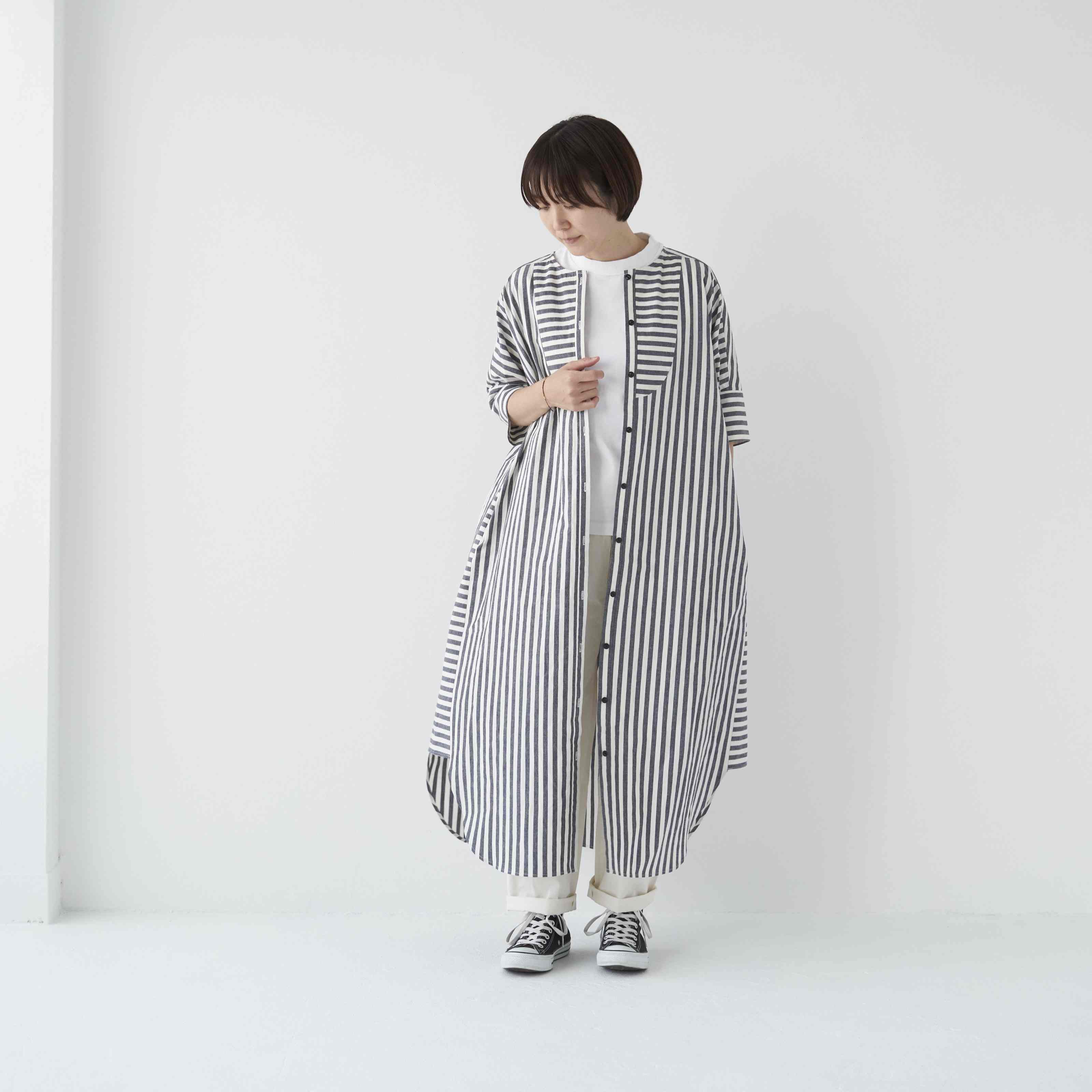 透け感はなく脇が深く上がっているので動きやすく、パンツと合わせてコート風に着ても。